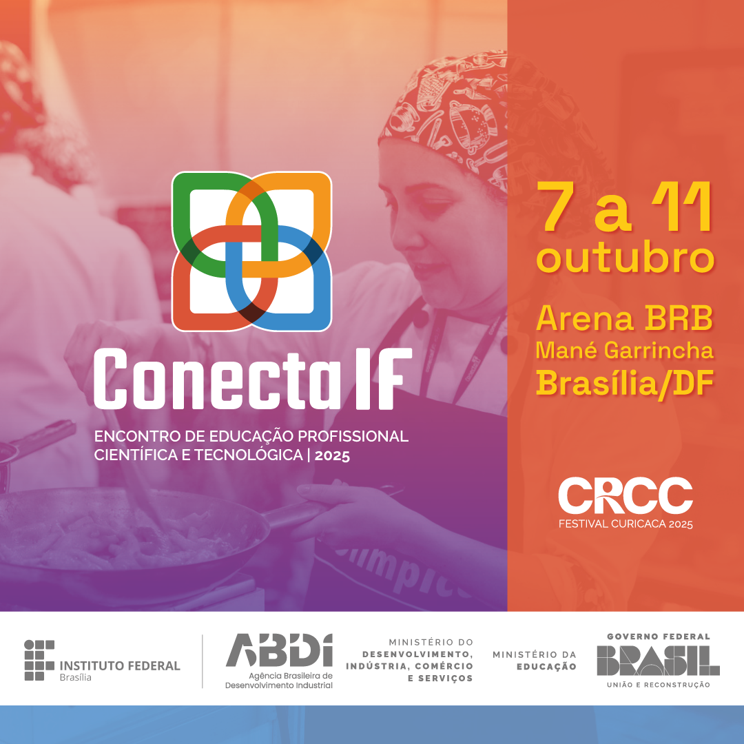 A Capital Federal abre-se mais uma vez para a Rede Federal de Educação Profissional, Científica e Tecnológica apresentar o que faz de melhor. De 7 a 11 de outubro, acontecerá a 7ª edição do ConectaIF, evento organizado pelo Instituto Federal de Brasília (IFB). Este ano o evento tem a parceria da Agência Brasileira de Desenvolvimento Industrial (ABDI) e será dentro do Festival Curicaca, ação internacional sobre inovação e tecnologia que acontecerá na Arena BRB (Estádio Mané Garrincha).
