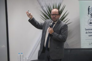 “A questão da inovação é latente dentro das Universidades e Institutos; nós temos uma característica de muito desenvolvimento científico. Entretanto, o Brasil é um país que não consegue transformar esse desenvolvimento científico em tecnológico e colocar esse processos e serviços no mercado, que é o que a gente chama de Inovação”, disse o palestrante Luiz Eduardo Kaercher. “As instituições têm um potencial enorme, que não podemos perder; por isso, acho que é super proveitoso falar sobre isso e sensibilizar os pesquisadores e estudantes sobre as questões discutidas no Seminário”.