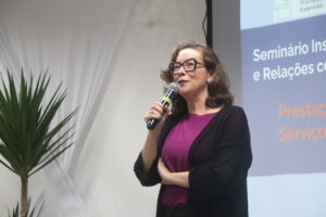 Em seguida, a pró-reitora de Extensão do IFRS apresentou um histórico sobre a prestação de serviços naquela instituição, desde as primeiras discussões até o cenário atual – passando pela gradual regulamentação institucional por meio de normativas e processos. Marlova apontou a prestação de serviços como uma das dimensões que compõem a Extensão, ressaltando que ela também tem um aspecto pedagógico, e ressaltou seu papel como vetor de visibilidade institucional, fortalecimento dos vínculos com a comunidade, impulsionamento da inovação e do empreendedorismo e ampliação de parcerias estratégicas.