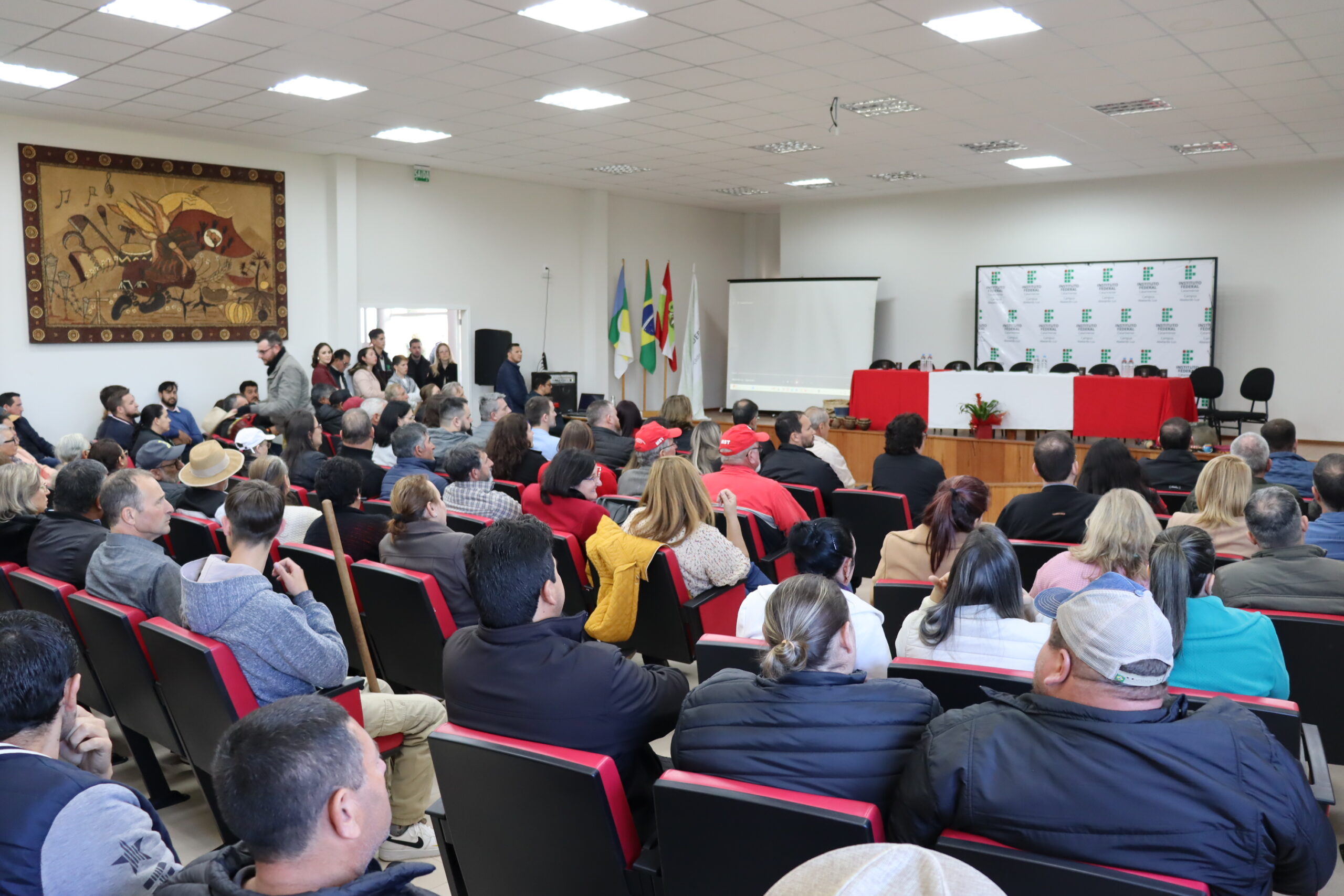 Após os pronunciamentos no auditório do campus, os presentes foram convidados para conhecer as obras e acompanhar o descerramento das placas posicionadas na área externa do auditório e do alojamento feminino. Na sequência, um momento de confraternização acompanhado por café preparado com produtos locais e outros produzidos pelos servidores no IFC Campus Concórdia.