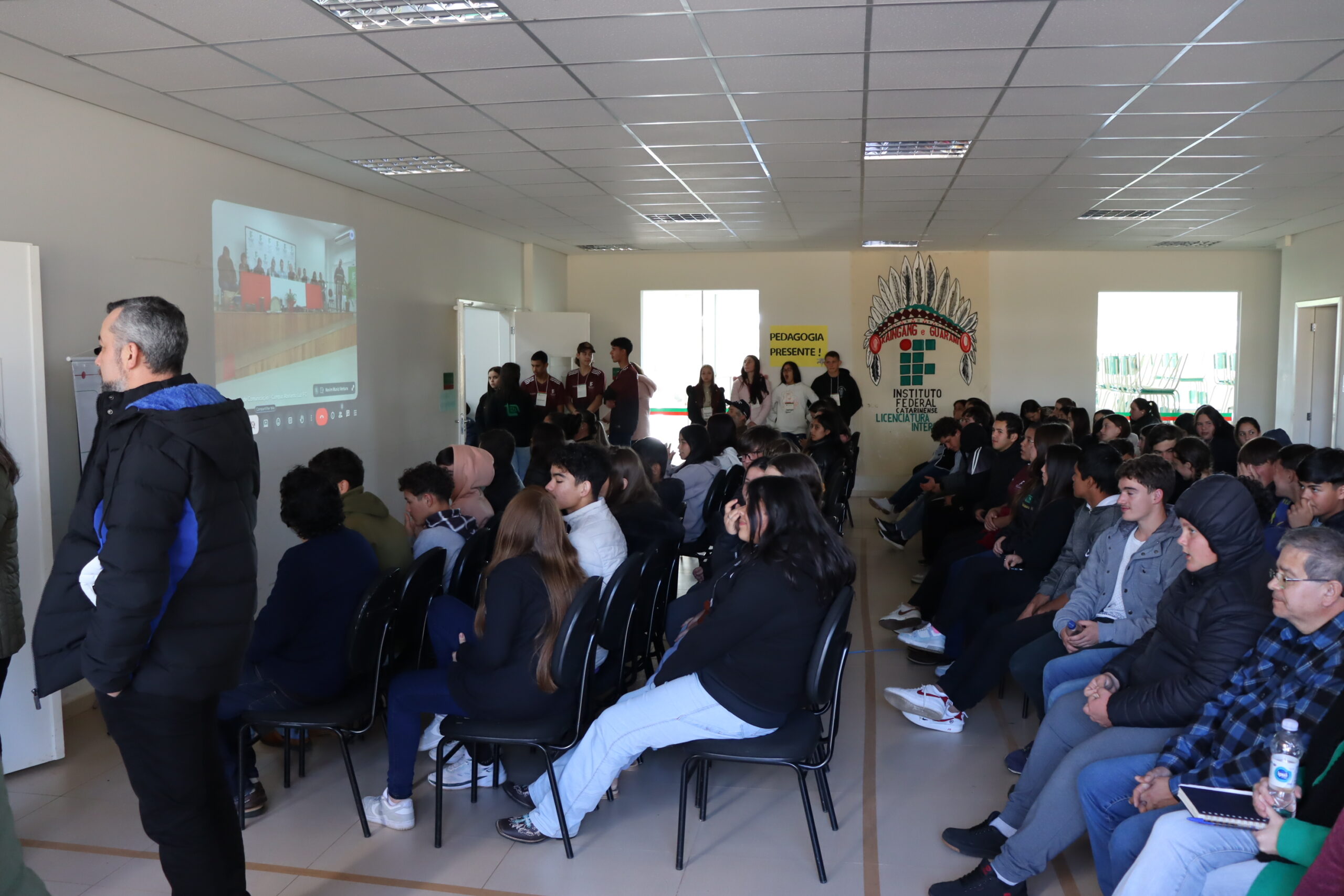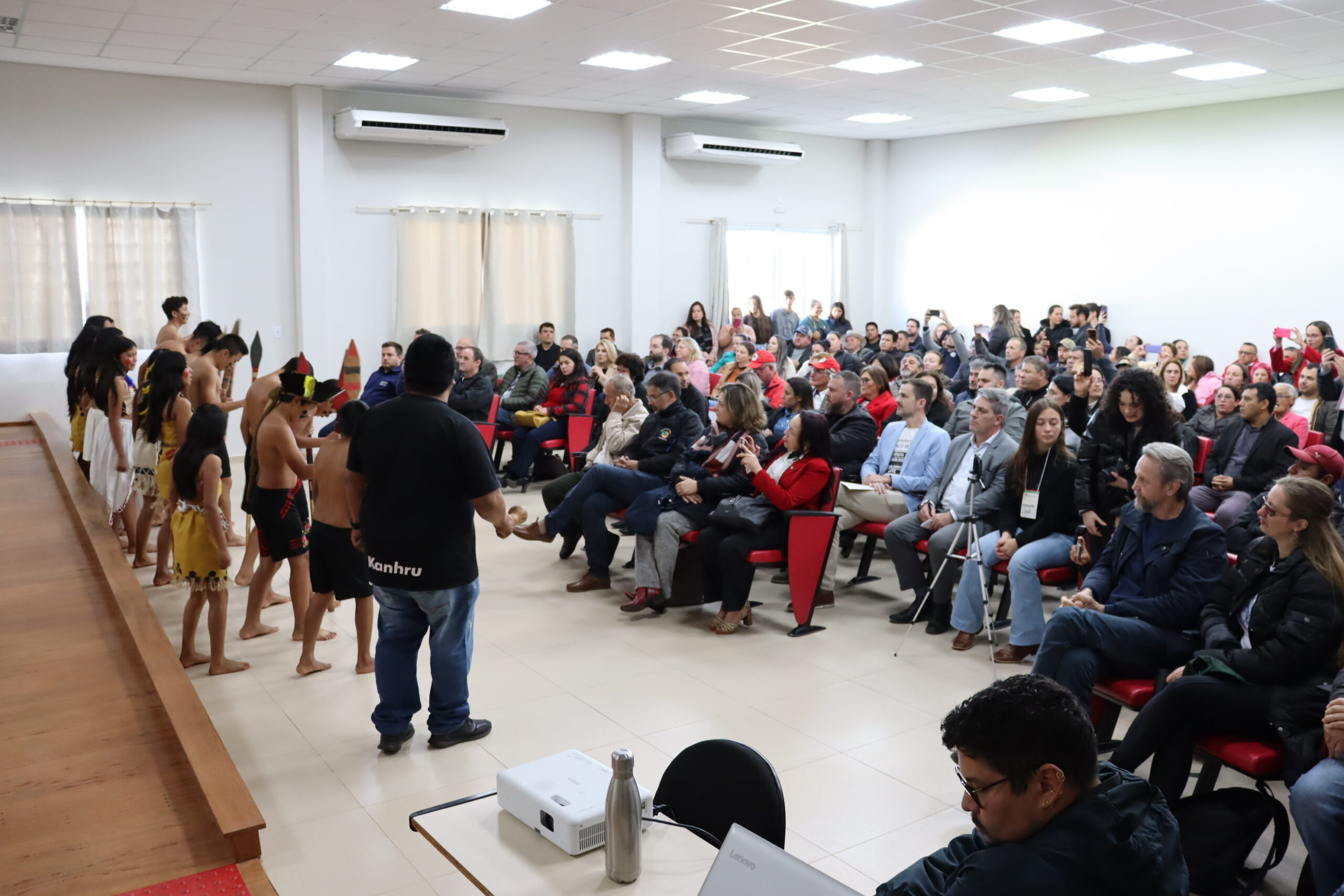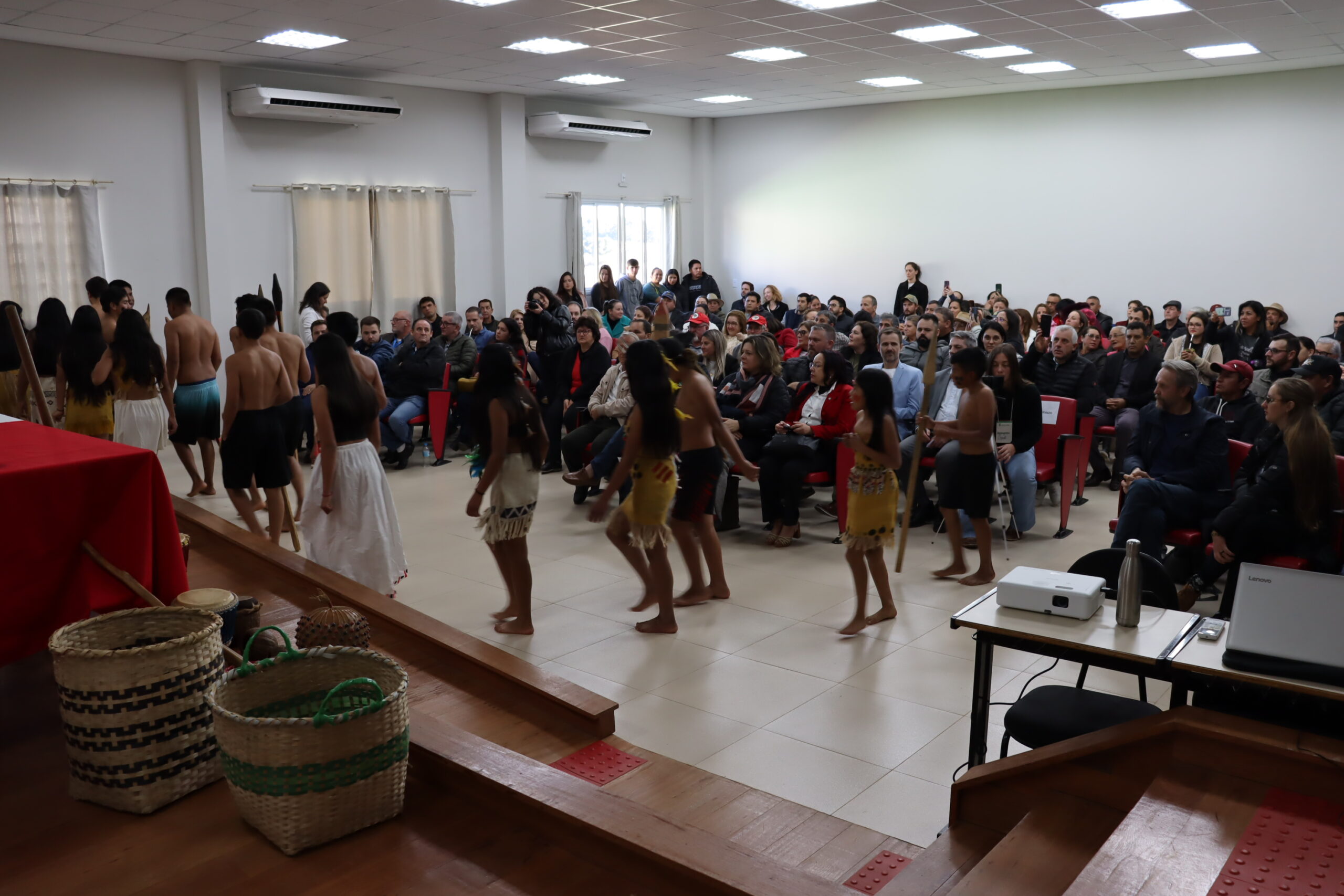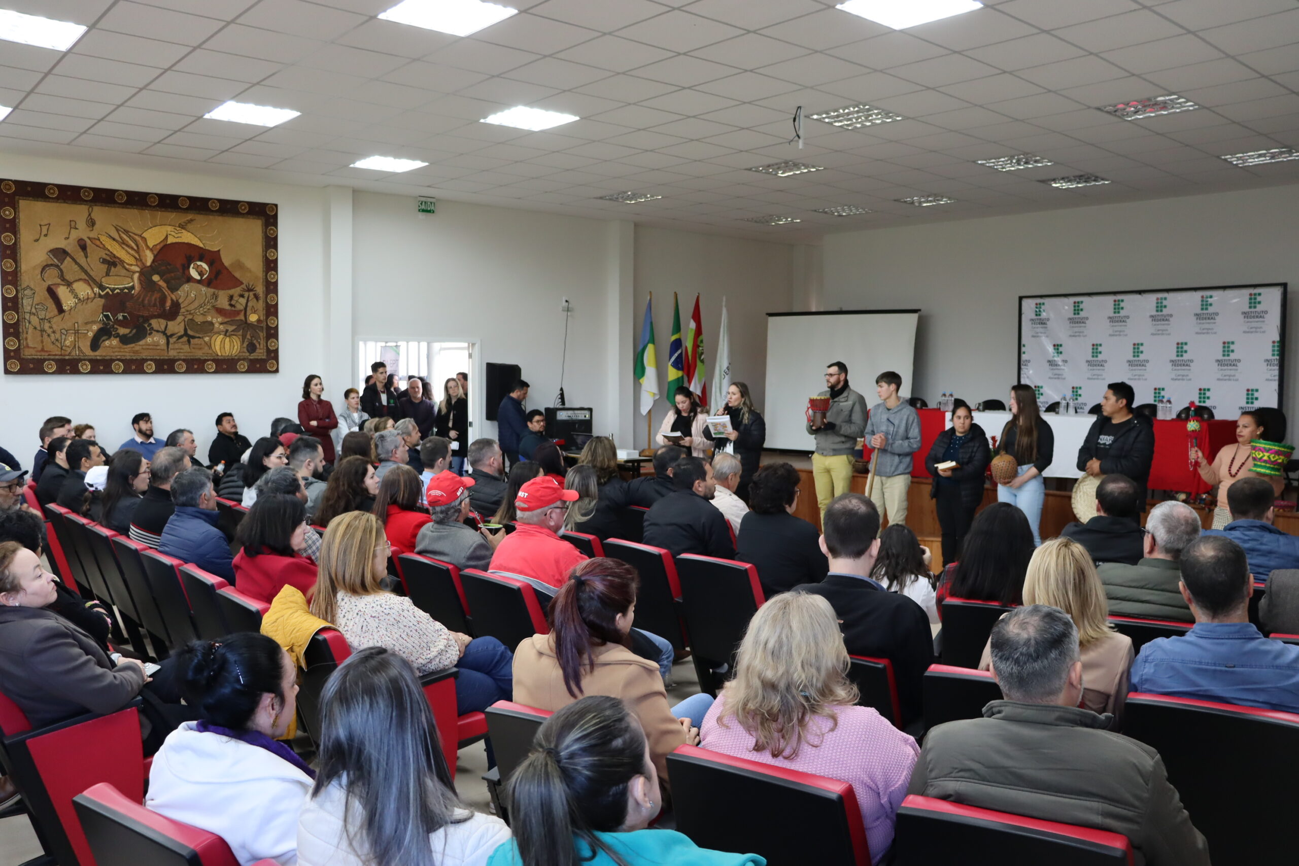 Entre os diversos convidados, a cerimônia contou com discursos das estudantes representantes da comunidade acadêmica; das lideranças dos povos indígenas e do Movimento Sem Terra; da presidência da Câmara de Vereadores e do prefeito de Abelardo Luz; do deputado Federal Pedro Uczai; do secretário da Setec/MEC, Marcelo Bregagnoli e do reitor do IFC, Rudinei Kock Exterckoter.