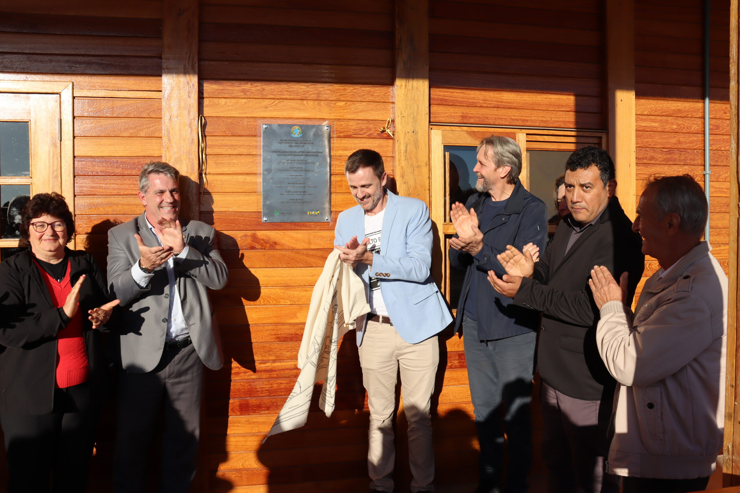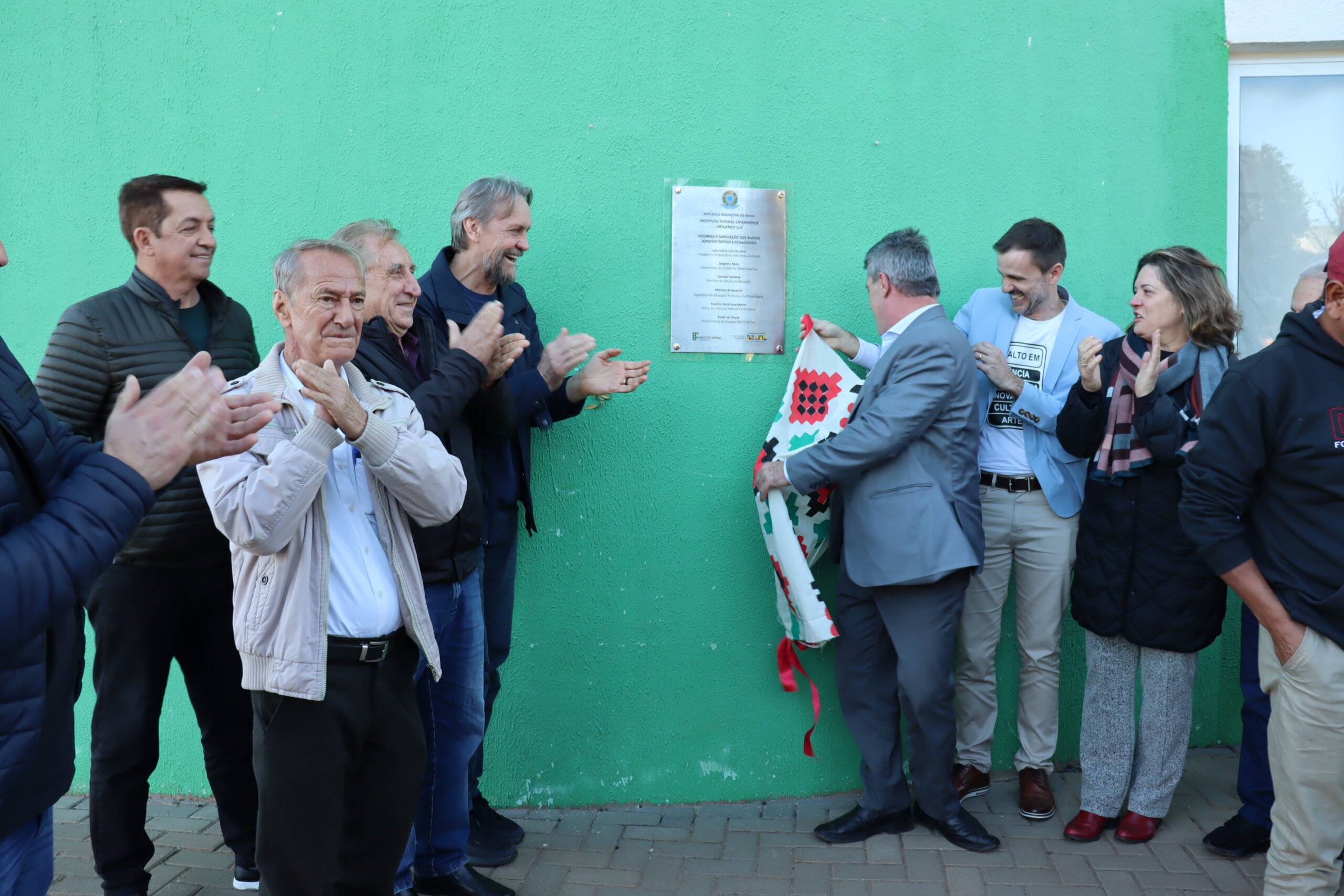 Exterckoter enfatizou também que nenhuma política pública caminha sozinha. “Fato que esta conquista só se tornou possível graças à atuação incansável de pessoas reais que sustentaram o avanço do campus mesmo nas condições mais desafiadoras. Hoje celebramos os resultados dessas obras que qualificam o atendimento a cerca de 900 estudantes, proporcionando ambientes mais dignos e acolhedores para o ensino, a pesquisa, a extensão e a inovação, e, acima de tudo, para o convívio humano. Cada tijolo que vemos aqui tem a marca do trabalho coletivo. É o reflexo da confiança da população em um projeto, de uma gestão comprometida e de um governo federal que tem a educação como sua prioridade máxima”, reforçou o reitor durante a fala com momentos de aplausos e entrega de homenagens, entre elas a reitora do IFC – gestão 2016/2023, professora Sônia Regina de Souza Fernandes, e os primeiros servidores que chegaram para atuar no campus.