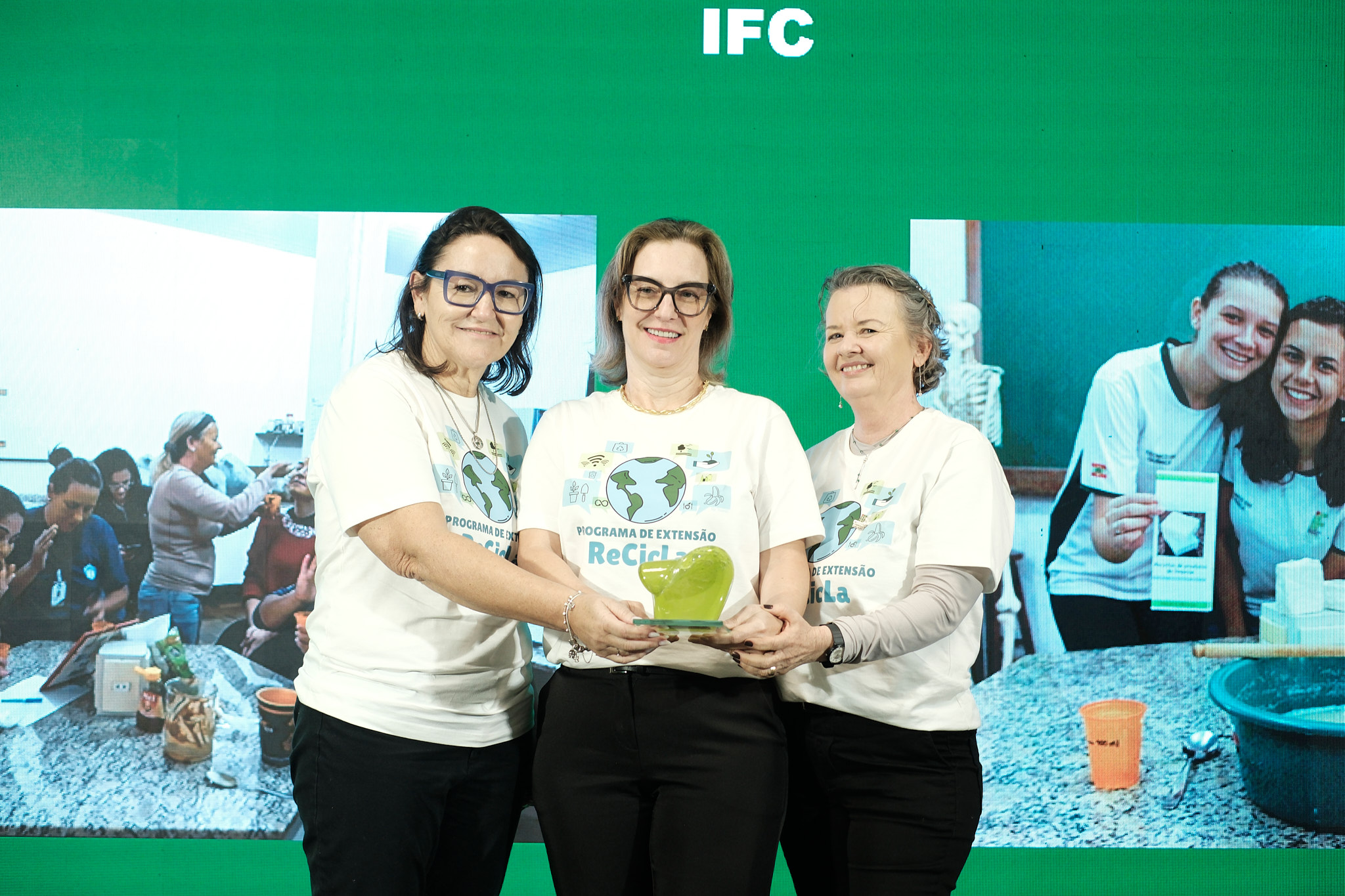 O programa de Extensão ReCicLa, promovido pelo Instituto Federal Catarinense, é o vencedor da categoria “Educação ambiental (setor ensino)” do 31º Prêmio Expressão de Ecologia, certificado pelo Ministério do Meio Ambiente como um dos mais importantes do país na área. A cerimônia de entrega da premiação, simbolizada pelo troféu Onda Verde, foi no sábado (27), em Florianópolis.